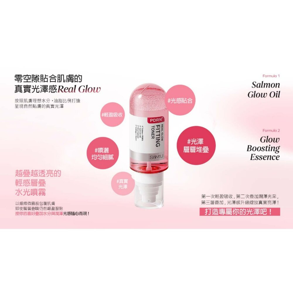 - 三文魚來源PDRN配方:添加三文魚來源PDRN成分,為肌膚提供細緻滋潤感,展現穩定肌膚狀況