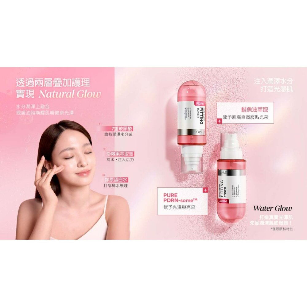 - 水潤配方設計:添加7種透明質酸,搭配PDRN與親膚油脂成分,展現清透水光質地,使用後膚感清爽不粘膩
