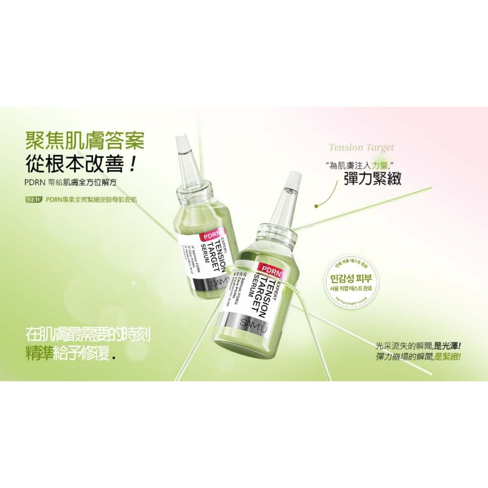 - 强化緊致光澤效果:PDRN與膠原蛋白的協同作用為肌膚注入彈力,呈現充盈緊實、光澤亮潤的膚感