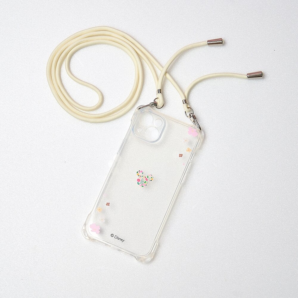 米奇款:透明底,小押花造型,手機殼4邊皆有掛繩孔,附白色掛繩一條(型號iphone 15 plus)
