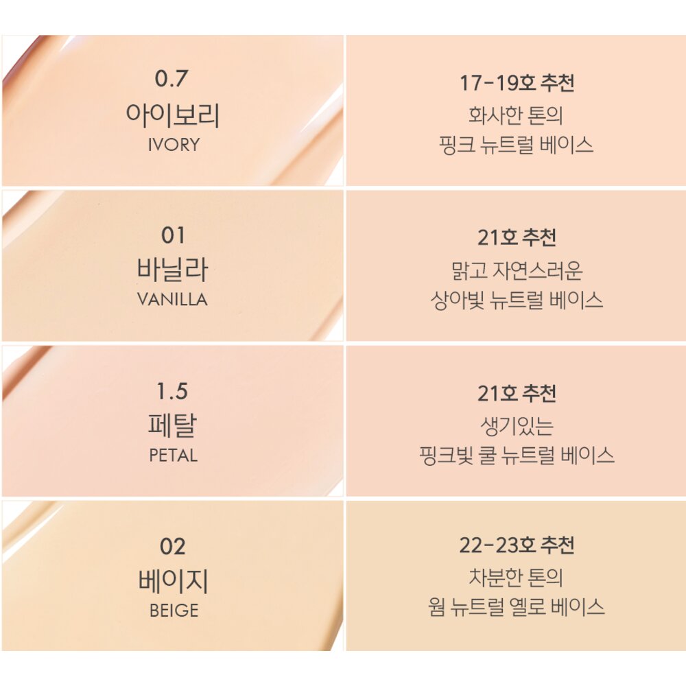 中至暖色調 比01偏暖,帶點自然黃米色,很適合遮蓋瑕疵,推薦19-23號膚色