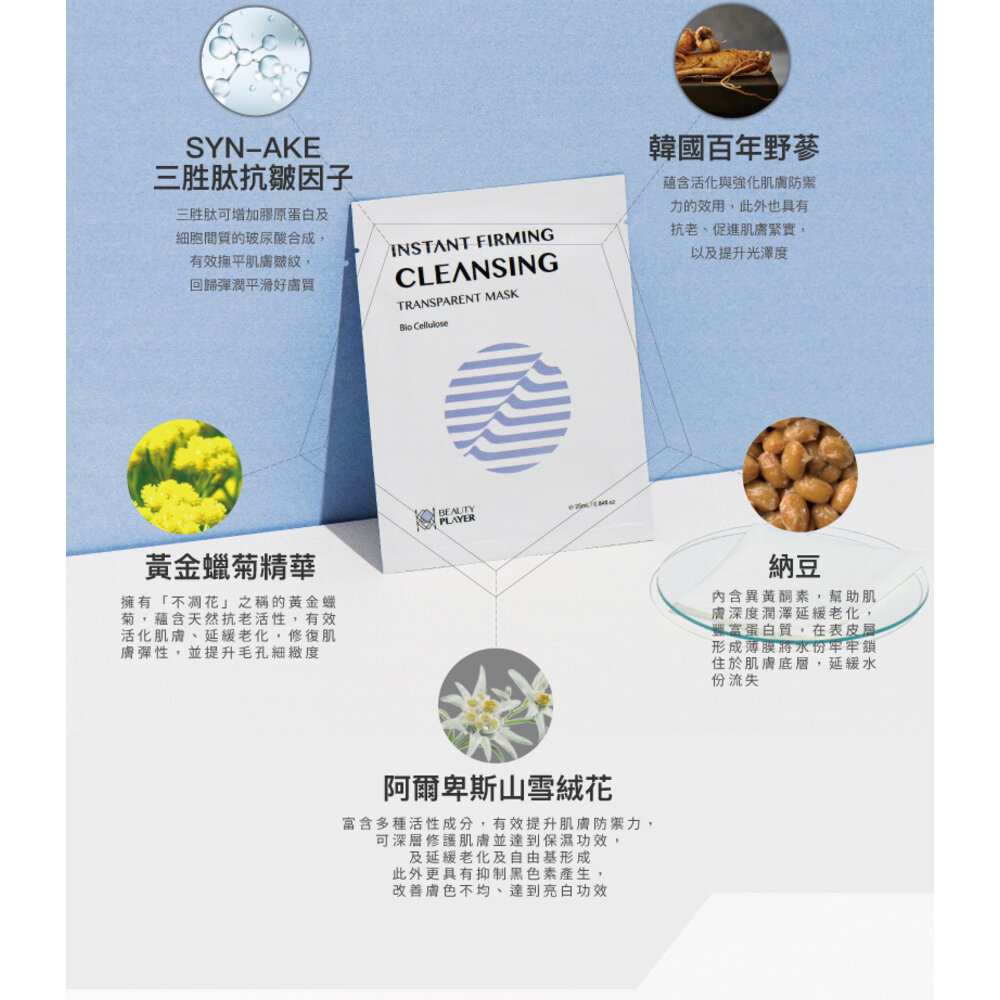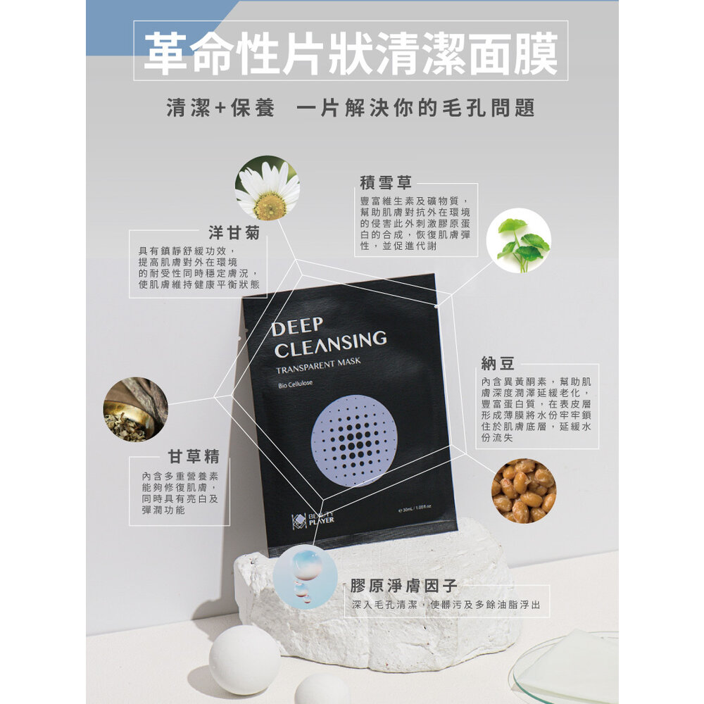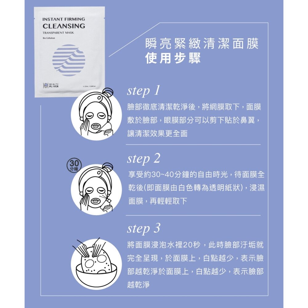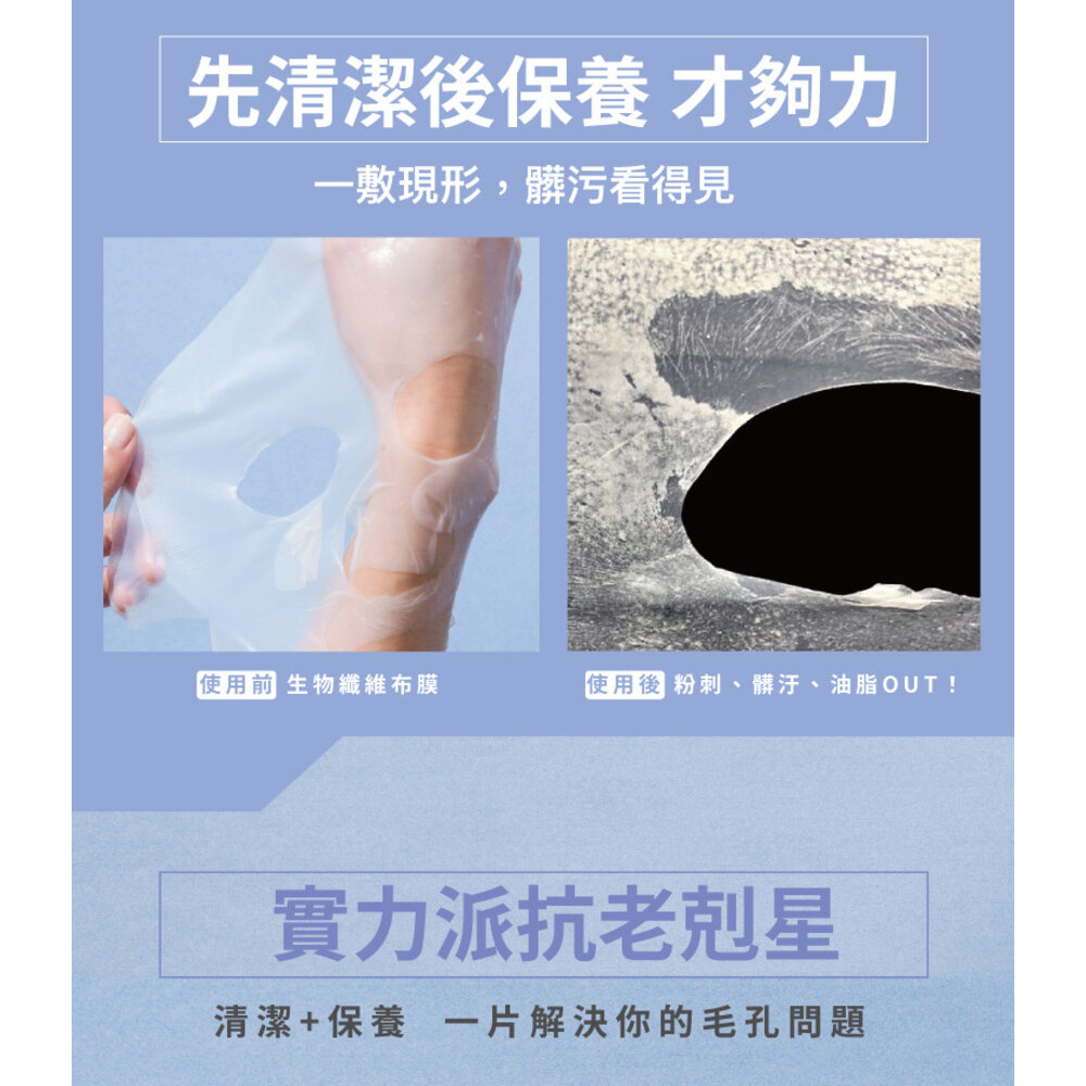 ★生物纖維布膜:可服貼皮溝與肌膚緊密貼合,加速深層清潔、油水平衡、淨化通暢毛孔。