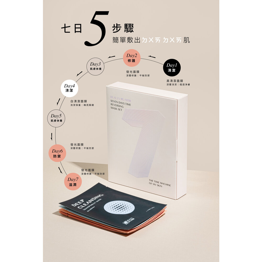 七日逆時光煥膚面膜組 (黑清潔*1、白清潔*1、發光*3)