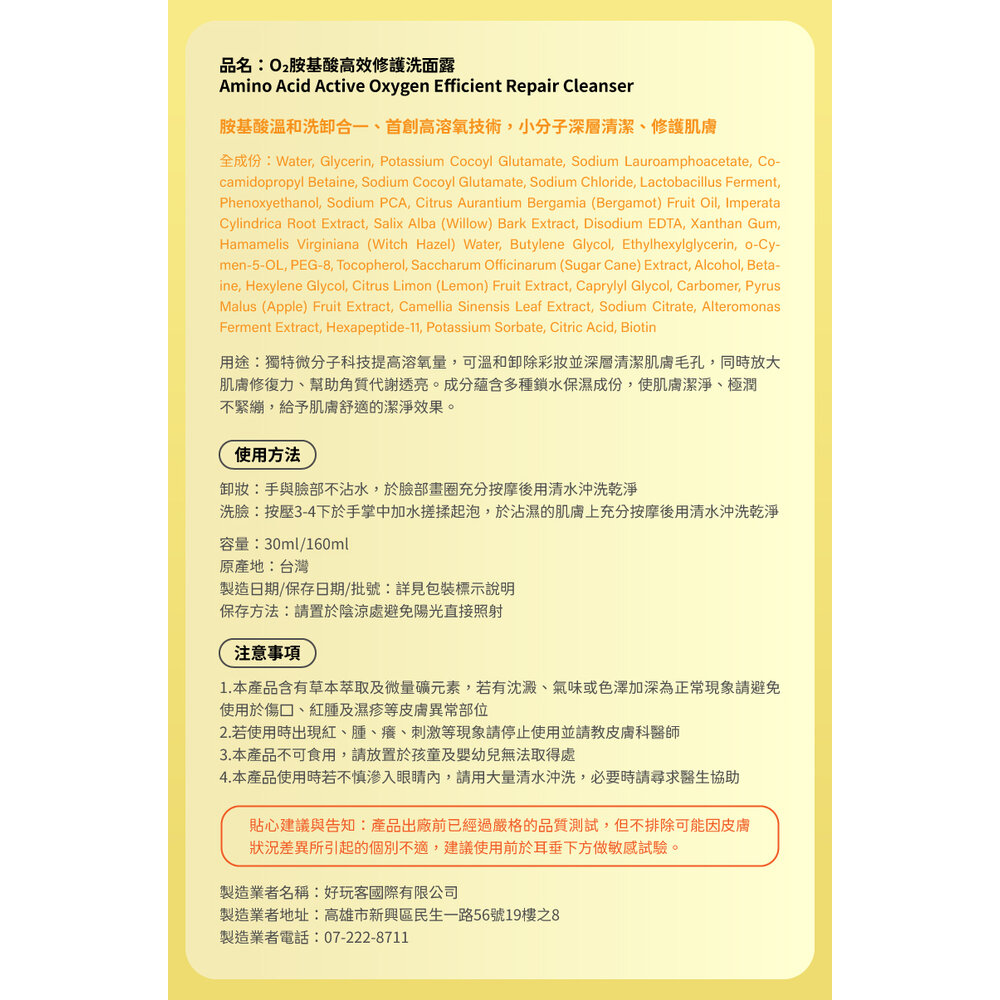O₂胺基酸高效修護洗面露 30ml/160ml (1107聯名版)