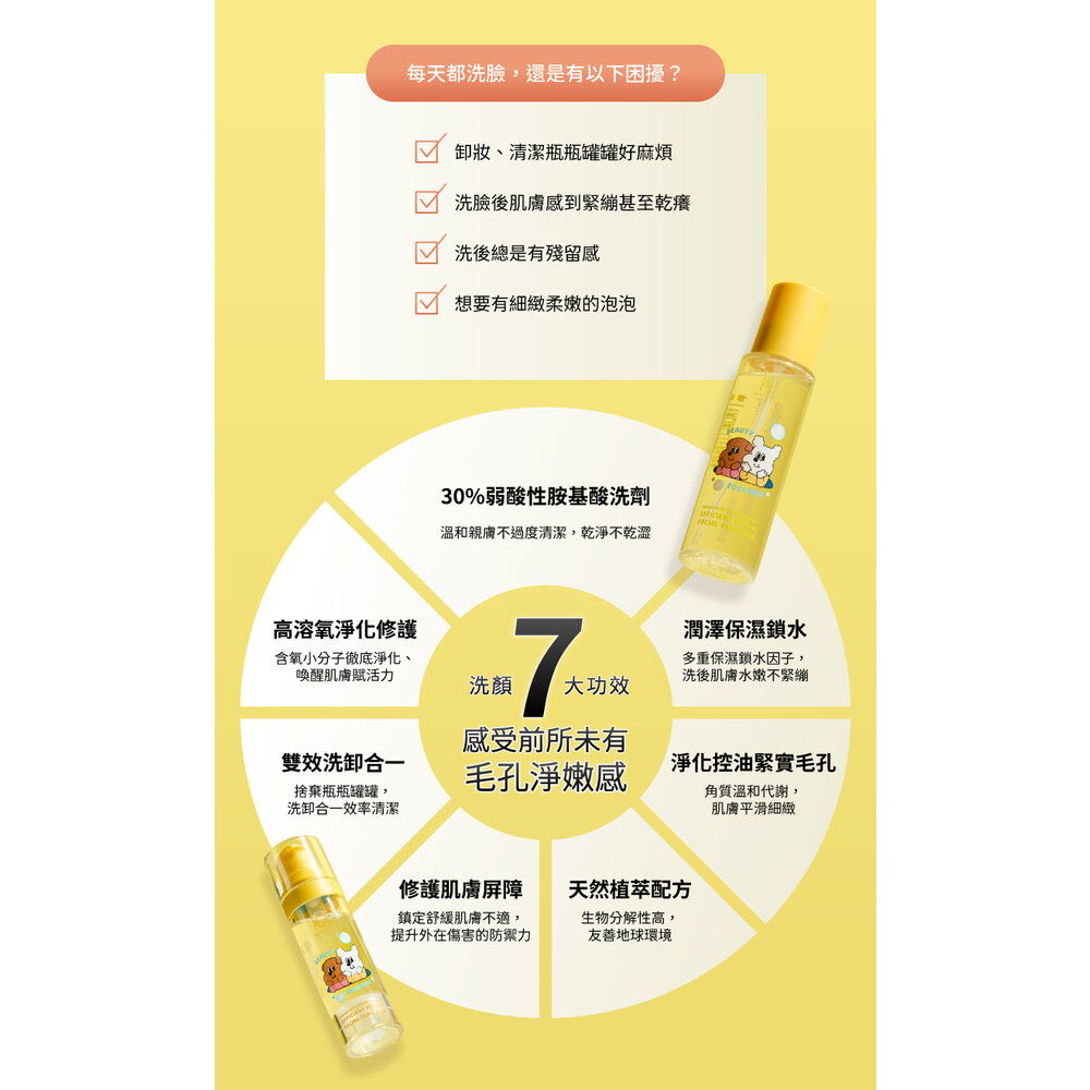獨家雙重洗卸配方:溫和胺基酸洗劑x 光波共振高溶氧技術