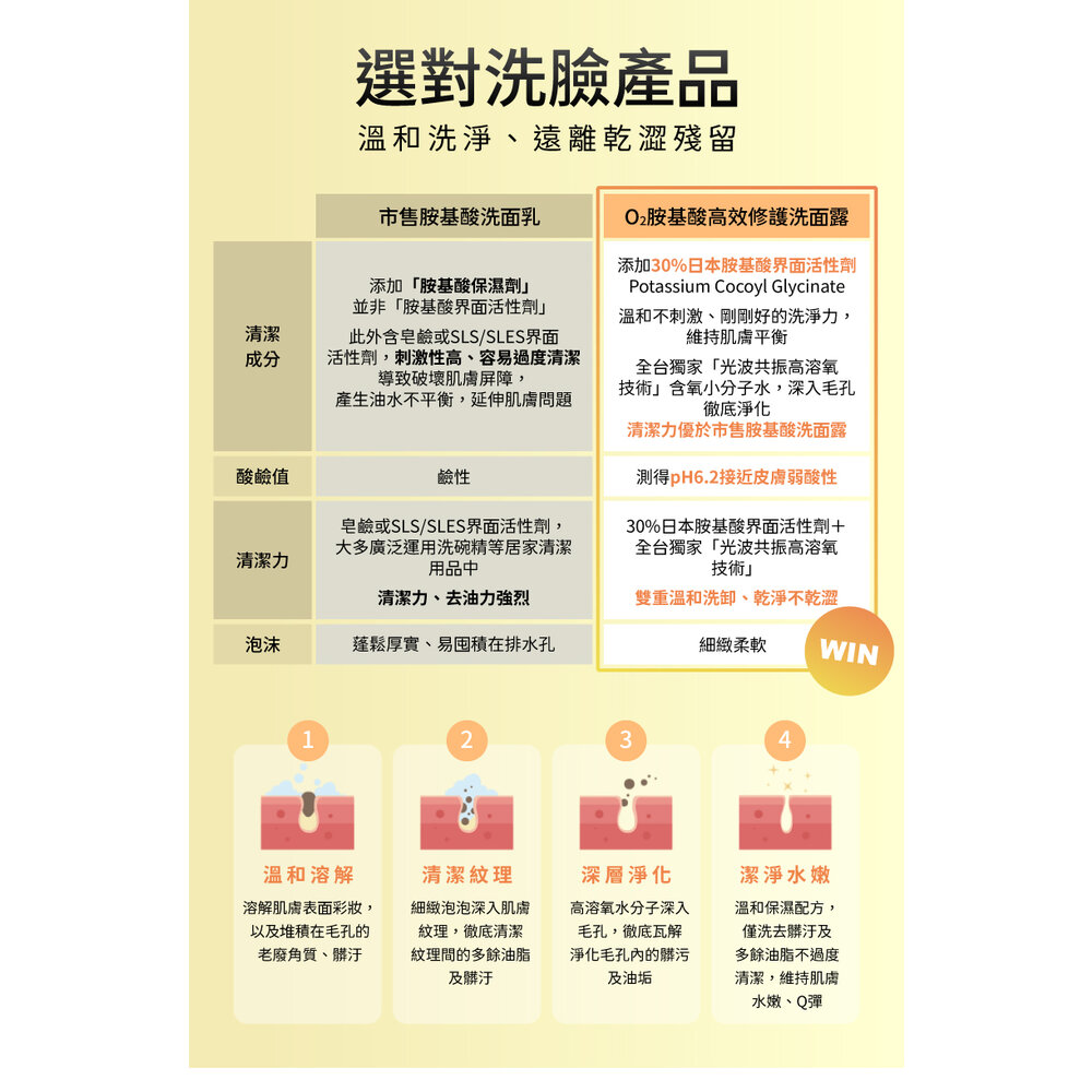 1. 30%弱酸性胺基酸洗劑 丨 溫和親膚不過度清潔,乾淨不乾澀